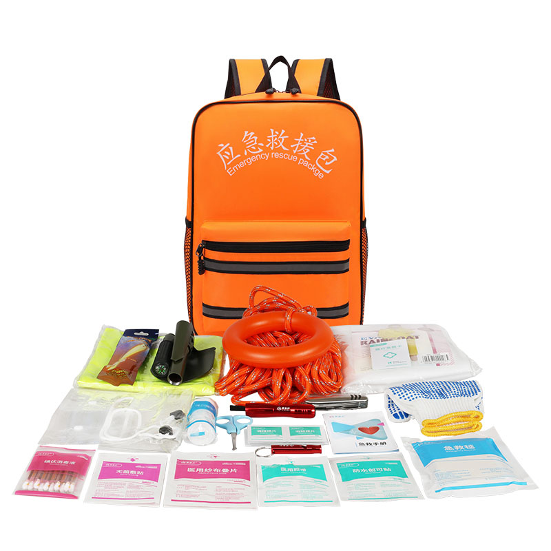 防水手机袋、高频救生哨、LED手电筒(含电池)、反光衣、漂浮救援绳、荧光棒、多功能军刀、多功能工兵铲、EVA雨衣 |